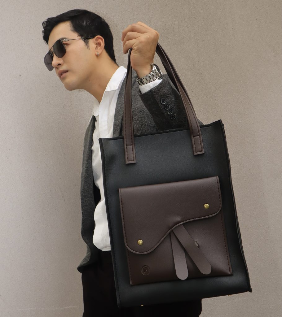 (Pre-order|Hàng đặt trước) MAX | 2-in-1plus Leather Tote, Backpack bag with flap in Black – Túi da đa năng tote balo có nắp màu đen