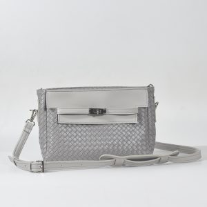 (In Stock|Có sẵn) WAVIE | Woven leather Crossbody bag in Gray – Túi da đan có khóa đeo chéo màu xám