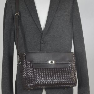 (In stock|Có sẵn) WAVIE | Woven leather Crossbody bag in Dark brown – Túi da đan có khóa đeo chéo màu nâu đậm