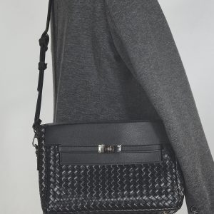 (In stock|Có sẵn) WAVE | Woven leather Crossbody bag in Black – Túi da đan đeo chéo màu đen