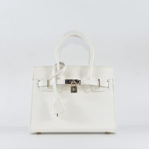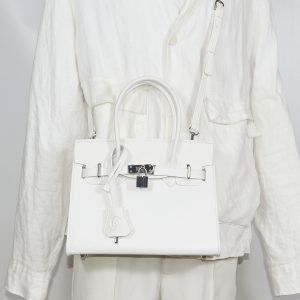 (In stock|Có sẵn) BIRKIN SELLIER STYLE | Leather Top-handle Crossbody bag size 25 with Silver hardware in White – Túi da dáng Birkin Sellier size 26 quai xách tay đeo chéo khóa bạc màu trắng
